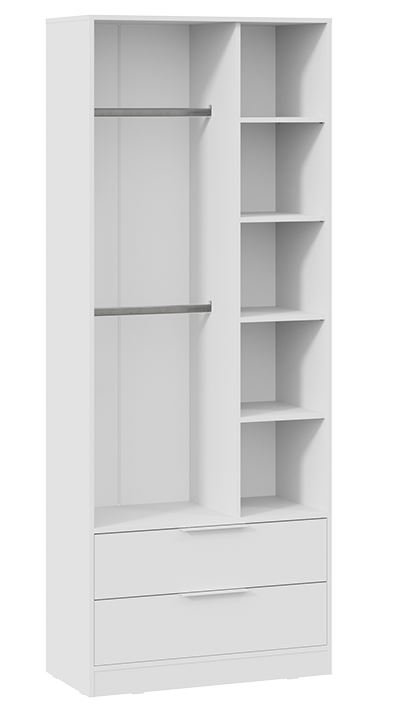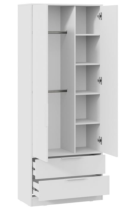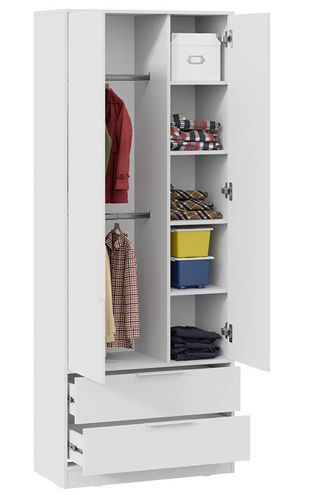Шкаф для одежды "Марли" сочетает в себе удобство и минимализм. За распашными дверями располагается ниша со штангой для одежды и боковыми полками. Вместительные ящики снизу обеспечат легкий доступ к вещам. Комбинированный шкаф отличное решение для детской комнаты, спальни или гостиной.