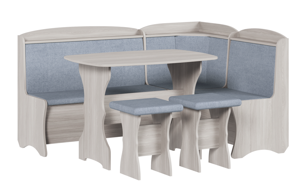 Обеденная группа, Анкор белый (скамья, стол, табурет), Ткань TEDDY 24