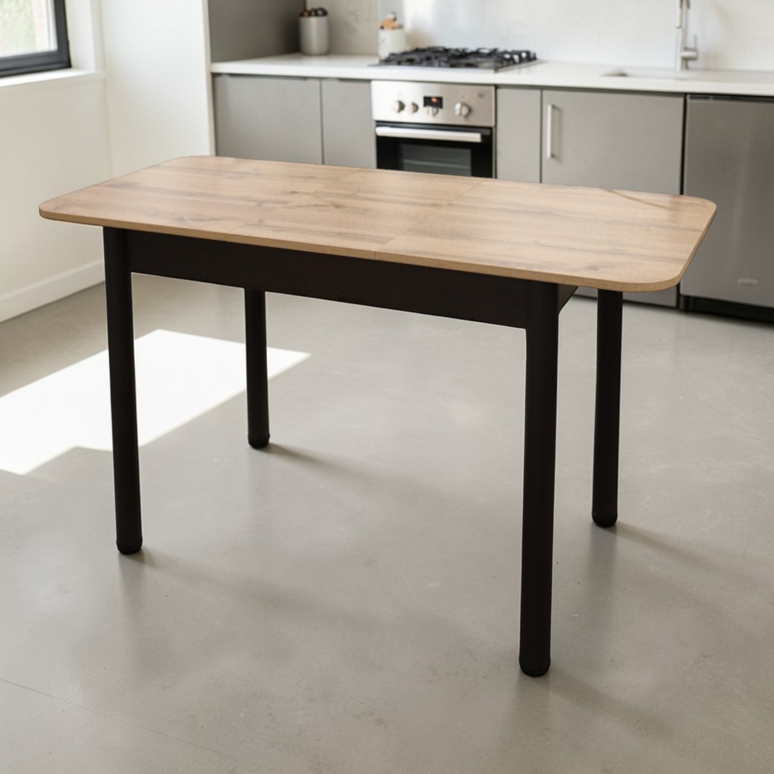 Стол Беседа РАСКЛ 980(+300) (Дуб вотан) B1, Опоры коричневые+(Бодега темный)