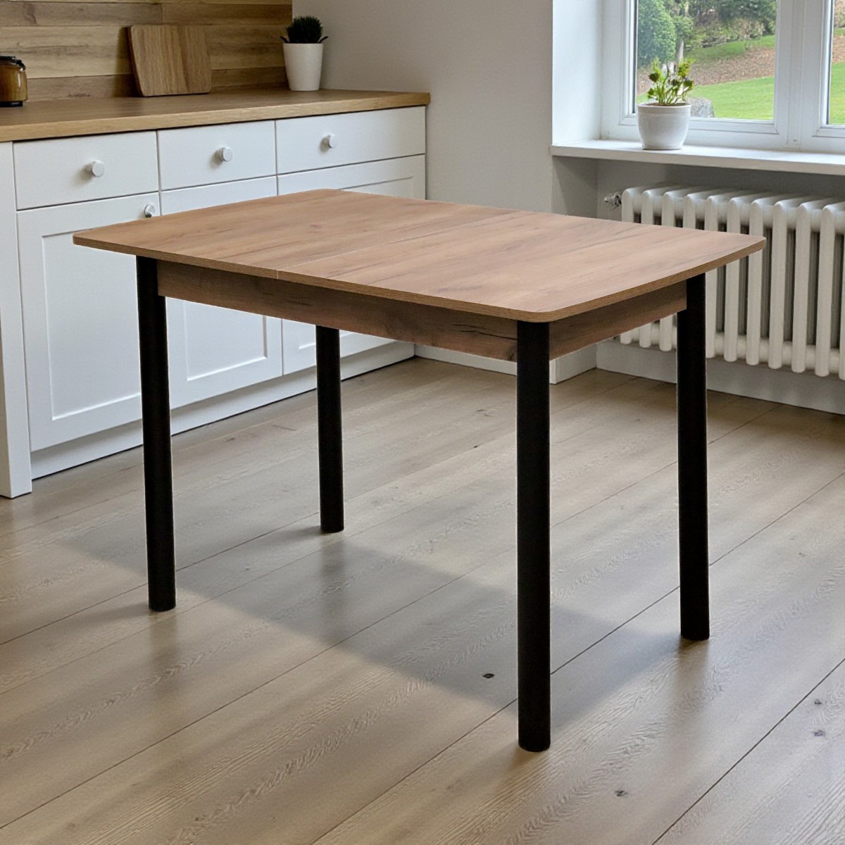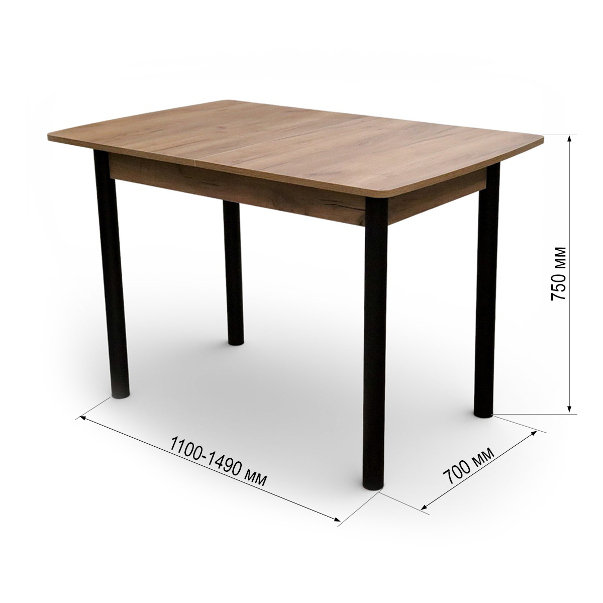 —Стол кухонный Уют 3 110(+39)*70*75 Дуб крафт табачный/черный