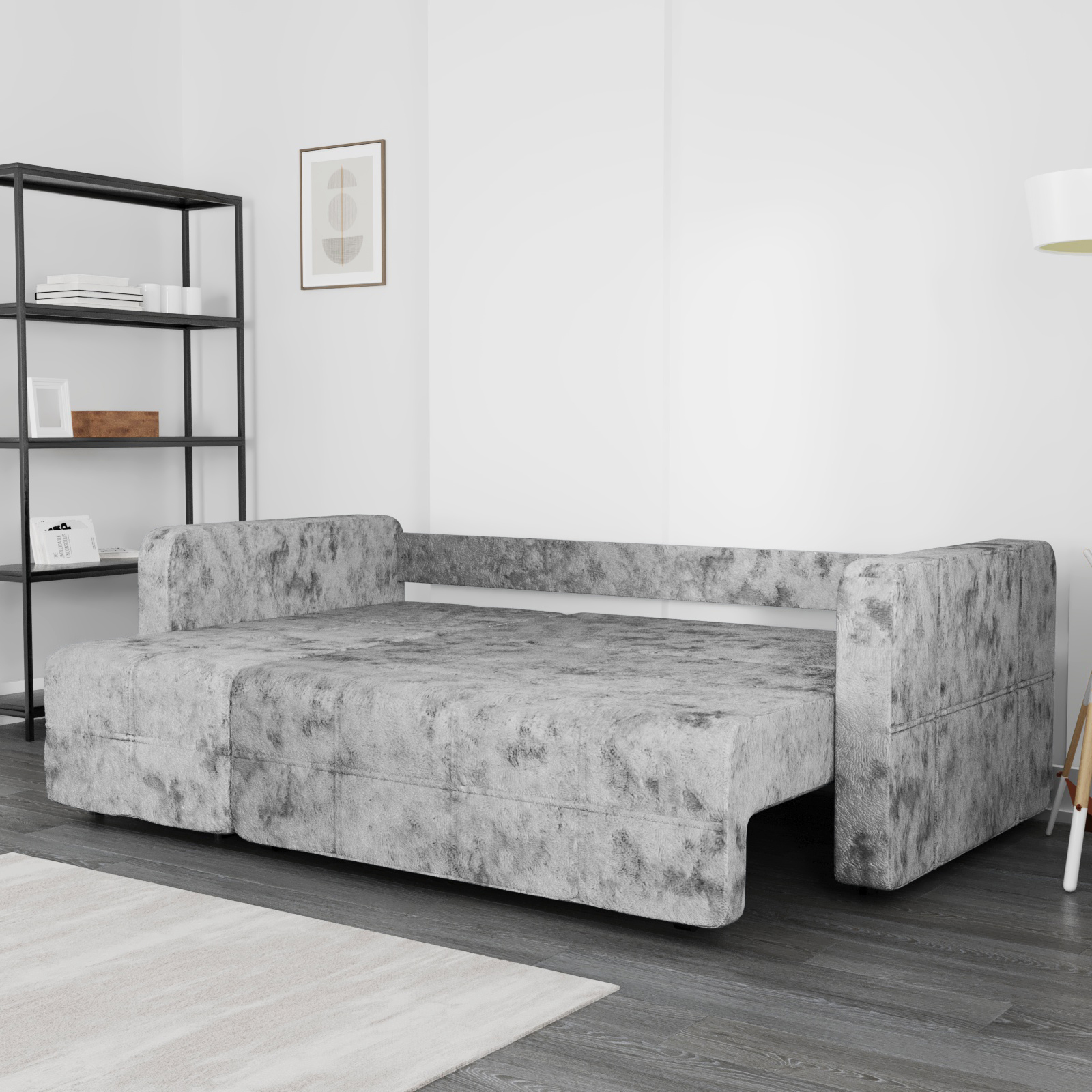 Диван обладает средней жесткостью, что оптимально для комфортного и здорового сна, поддерживая позвоночник. Обивка выполнена из износостойкой ткани, устойчивой к повседневным нагрузкам, что гарантирует дивану опрятный вид на годы.
