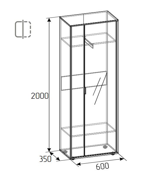 ✓ Вместительный шкаф (200 см): Полки, выдвижная штанга для одежды и полноразмерное зеркало.