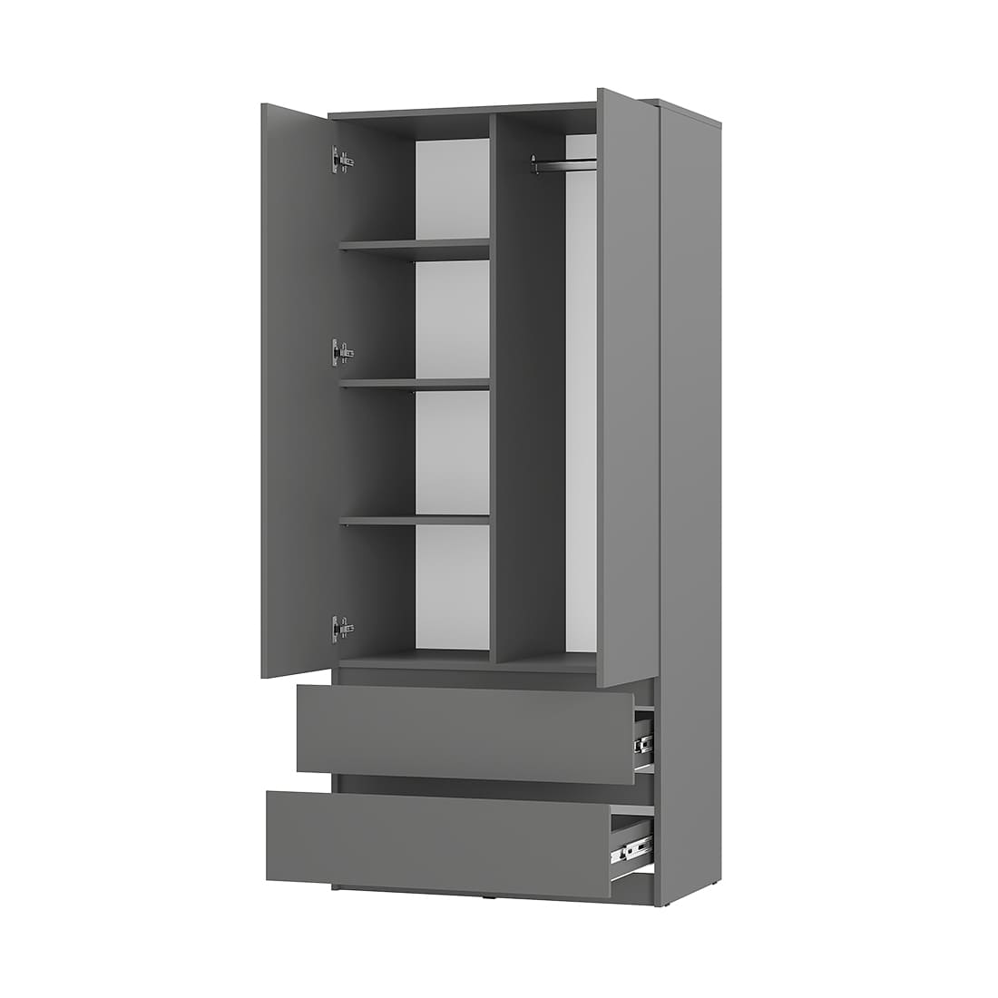 Современный и функциональный шкаф «Симпл» — идеальное решение для спальни, прихожей или детской. Модель в стиле минимализма выполнена в трендовых оттенках Белый и Графит, что позволяет ей гармонично вписаться в любой интерьер.