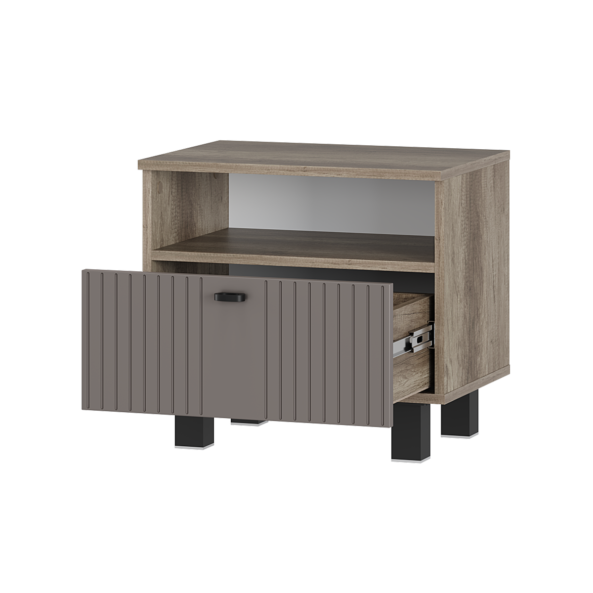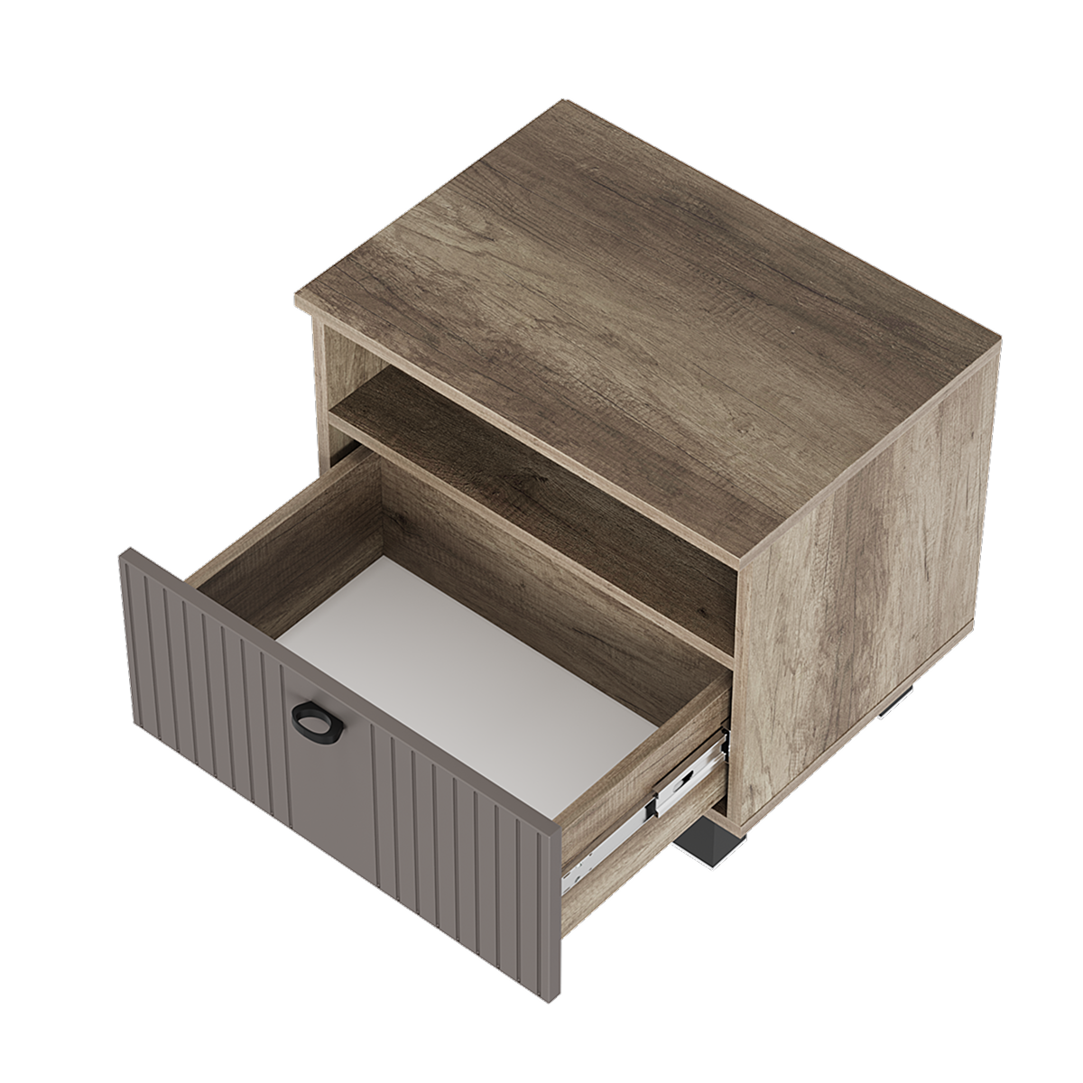 Прикроватная тумба «Олива» ТБ-14 — это идеальный компаньон для вашей спальни. Компактная, но вместительная, она поможет создать уютный и организованный уголок рядом с кроватью. Лаконичный дизайн с матовым фасадом цвета «муссон софт» и геометрией корпуса «дуб каньон» дополнит любой интерьер — от классики до современного минимализма. Удобный выдвижной ящик на шариковых направляющих и открытая ниша с крючком позволят всегда держать под рукой нужные мелочи.
